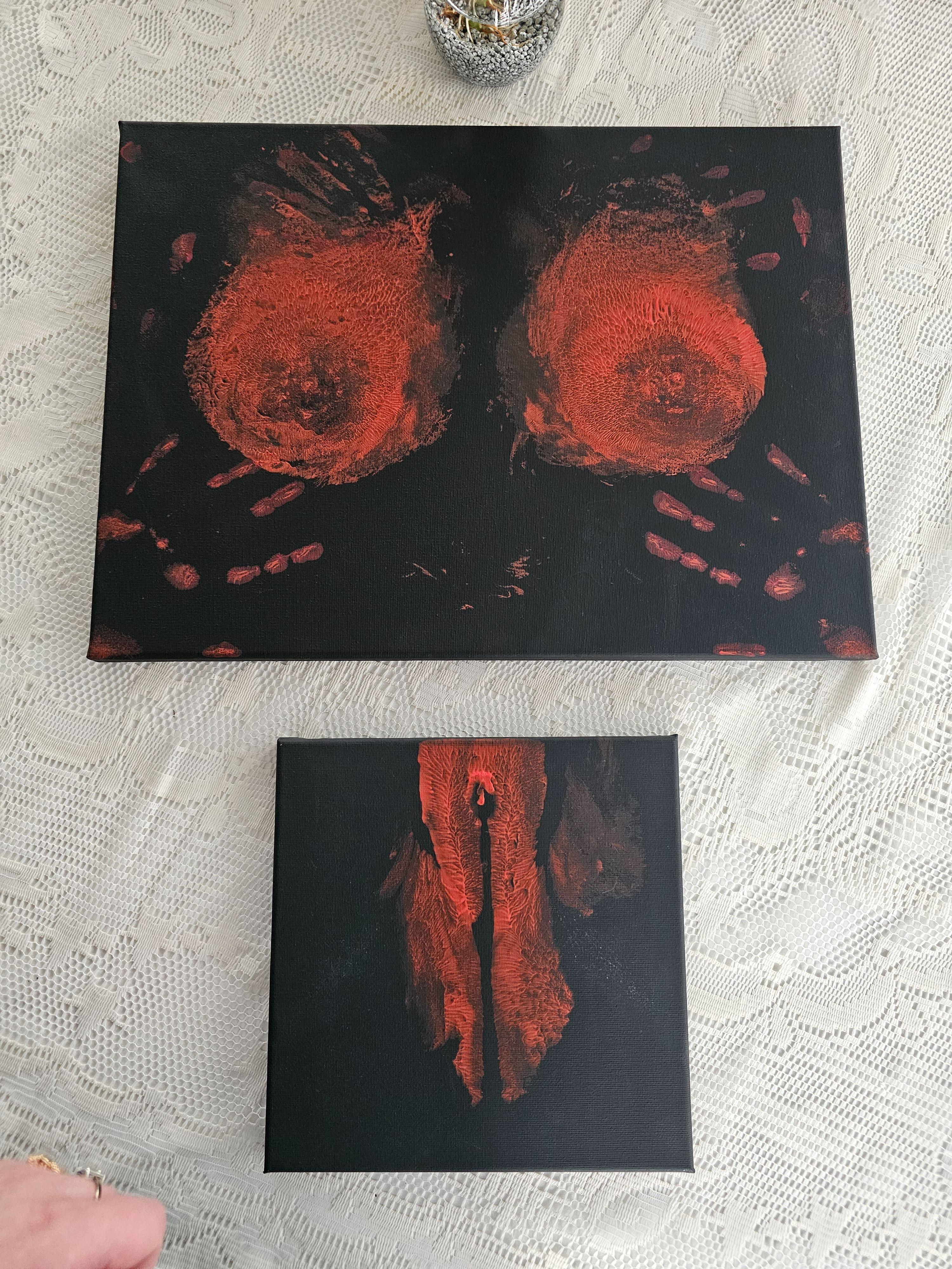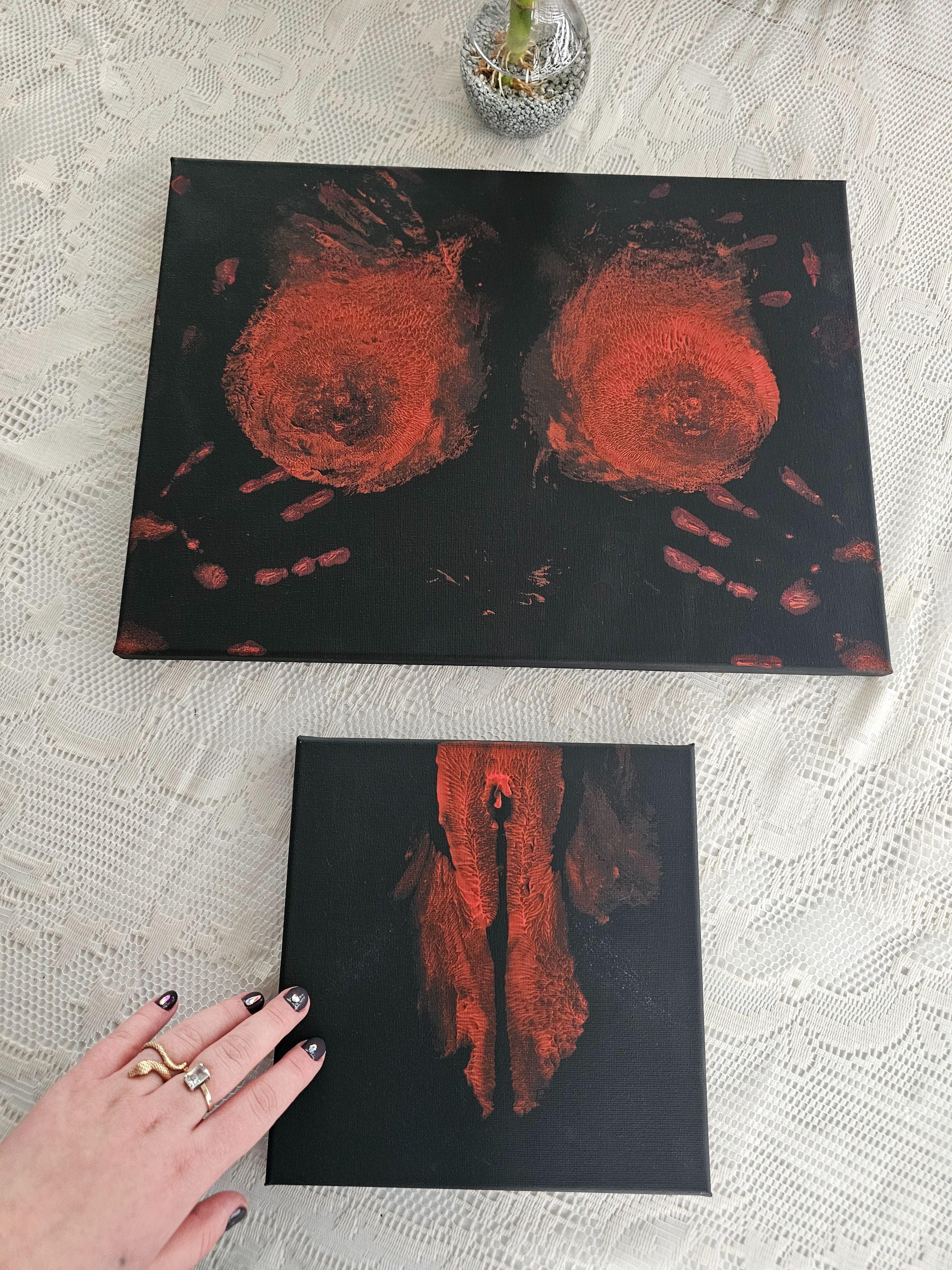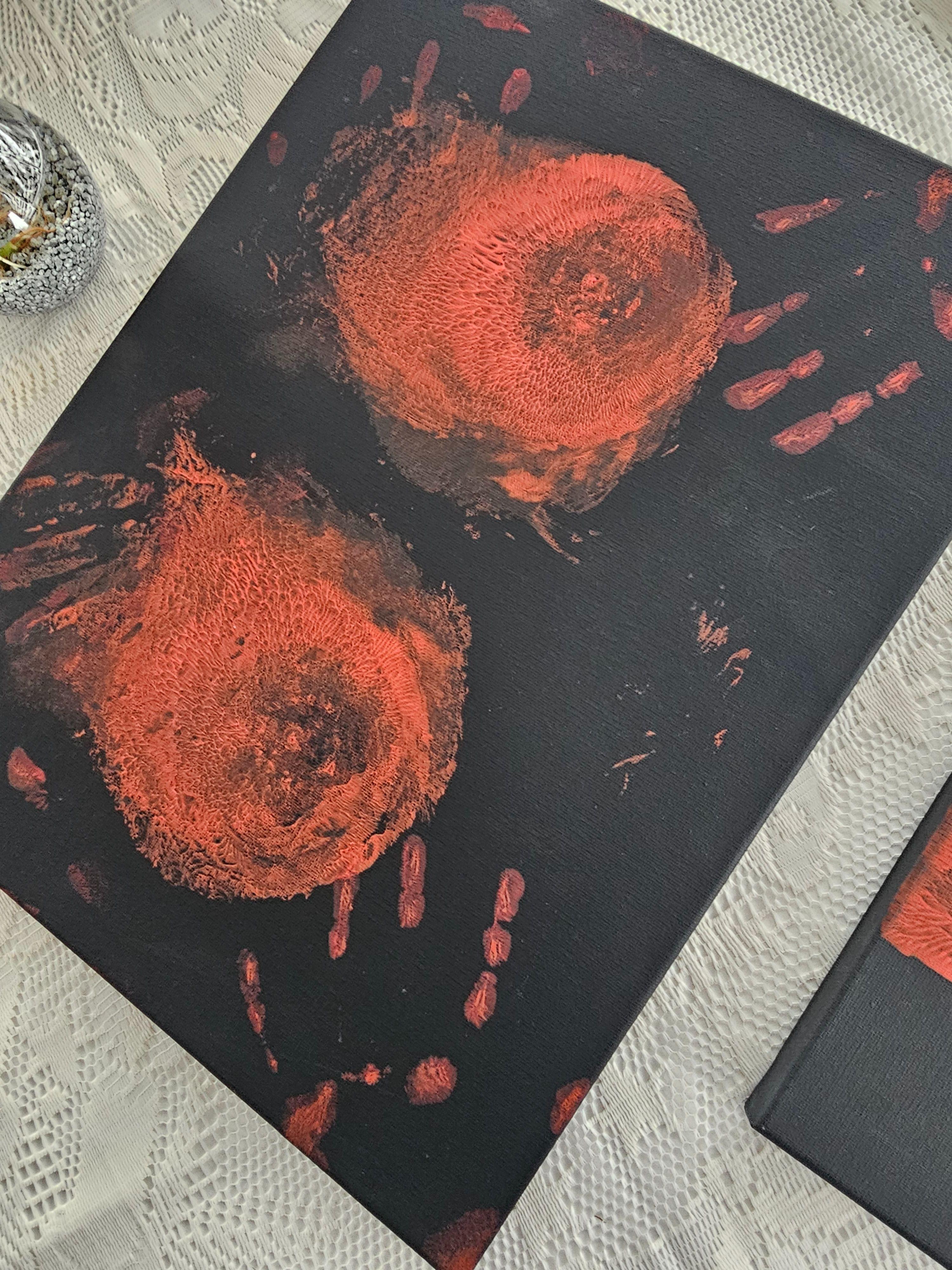 Diese Arbeit ist ein direkter körperlicher Abdruck und wurde nicht mit Pinseln oder Händen gemalt.