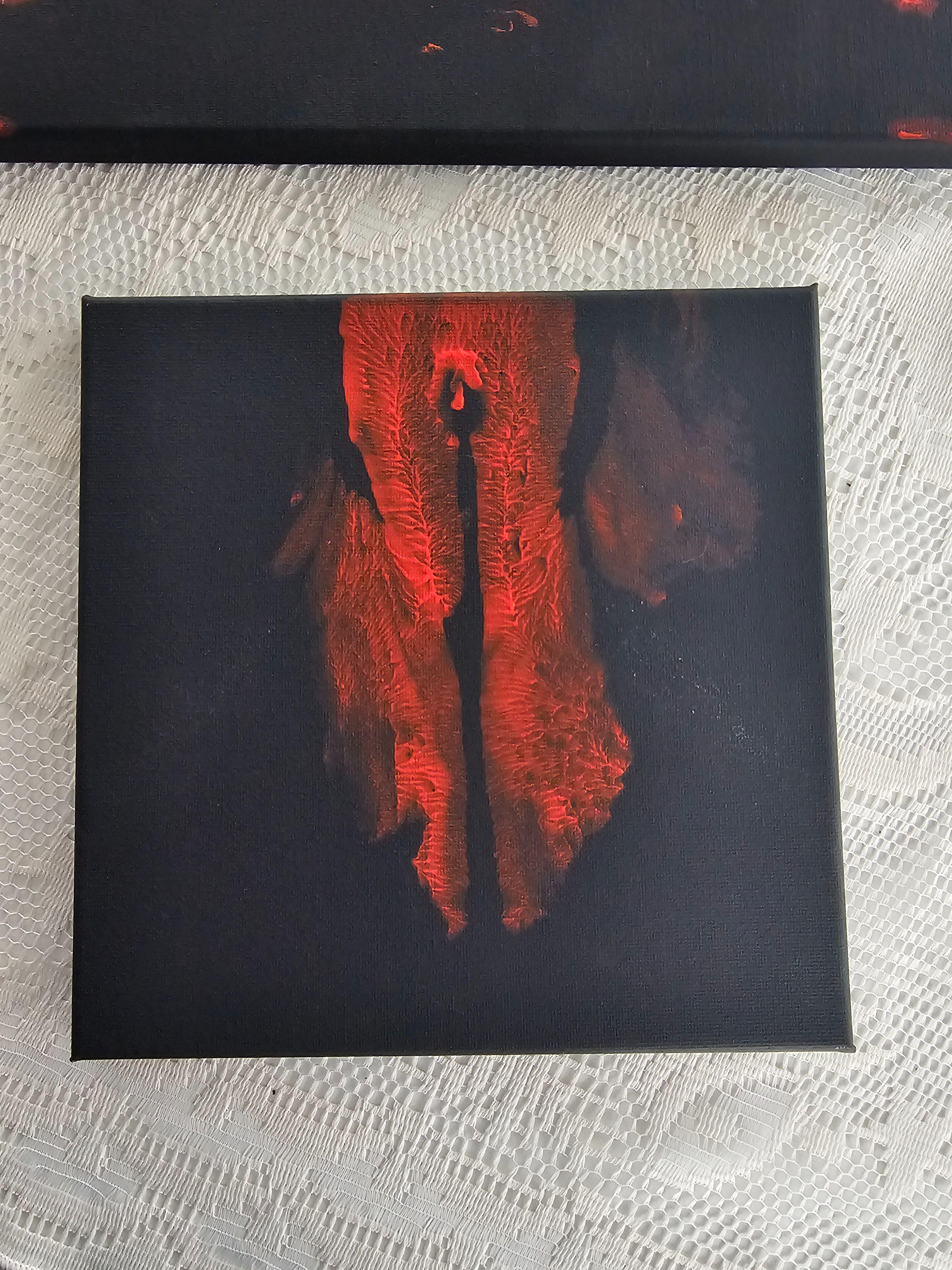 Die Form entstand durch unmittelbaren Kontakt des menschlichen Körpers mit der Leinwand und versteht sich als künstlerischer Akt zwischen Präsenz, Verletzlichkeit und Stärke.