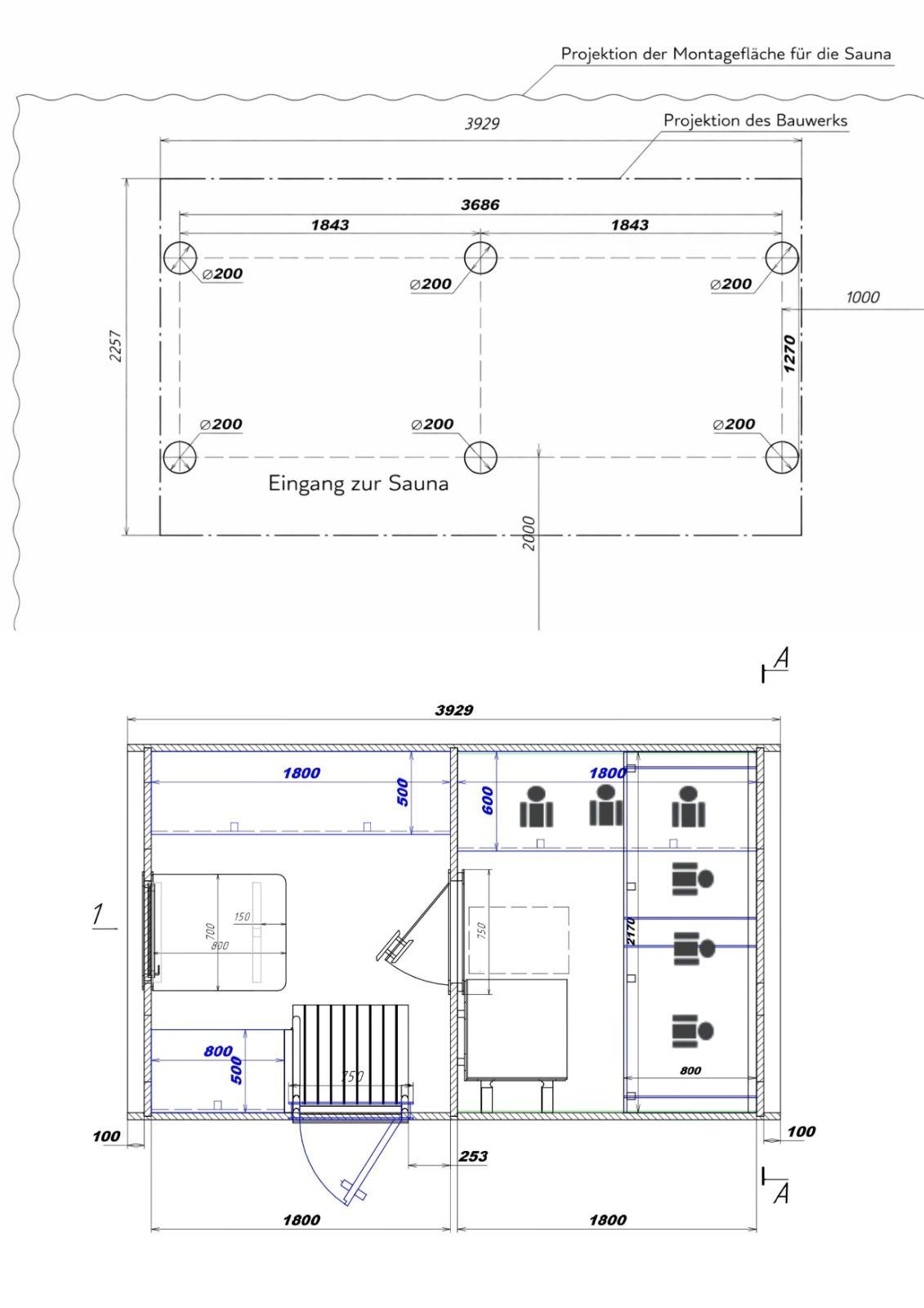 Die Sauna verfügt über eine durchdachte Innenaufteilung mit separatem Ruheraum und Dampfraum, sodass bis zu 6 Personen gleichzeitig bequem entspannen können.