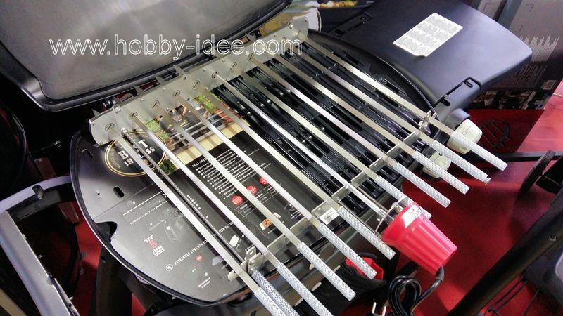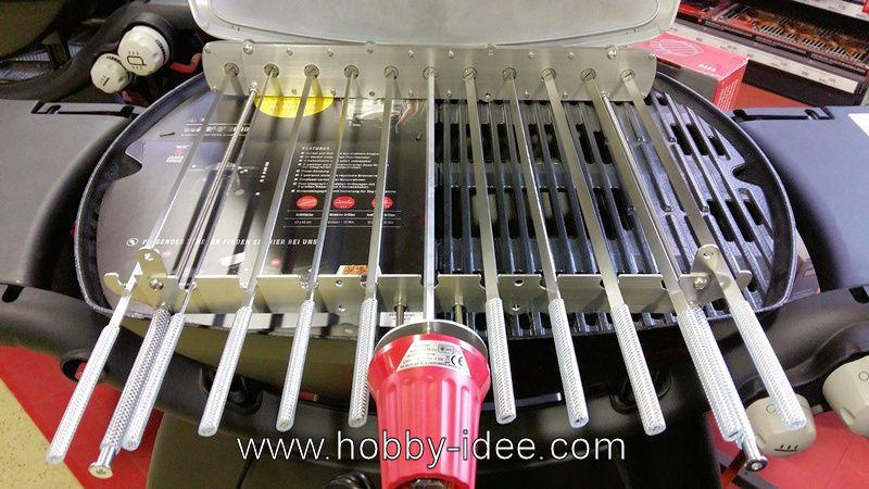 Auf Wunsch kann ich Grillspießantriebe (-aufsätze) für 8, 9, 10, 11, 12, 13, 14, 15 oder 21 Spieße anbieten.