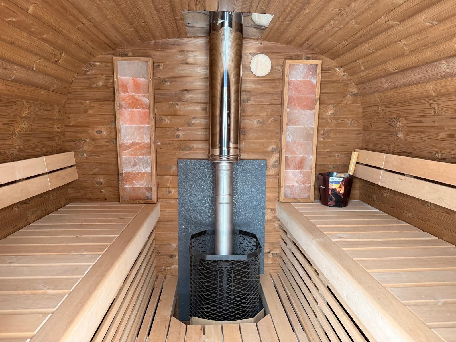 Ofen inklusive – wahlweise Elektroofen oder Holzofen.